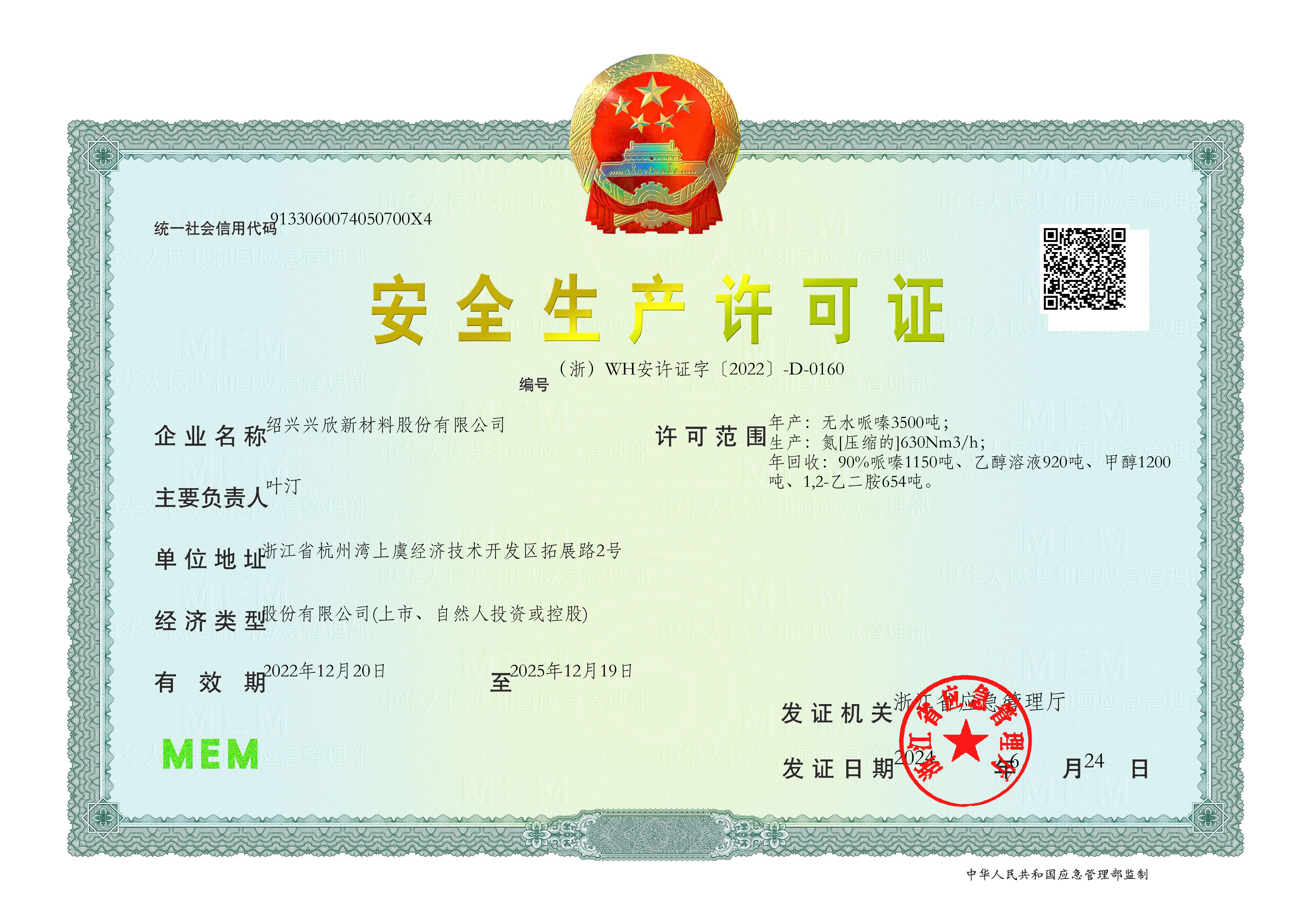 紹興興欣新材料股份有限公司成立于2002年06月27日,占地面積122畝,位于杭州灣上虞經濟技術開發區拓展路2號,現有職工200余人,專業技術人員50余人;博士、碩士研究生30余人組成的一支知識型、專業化的技術科研團隊。公司面向全球市場,專業開發電子化學品、環?;瘜W品、醫藥中間體、高分子材料等先進新材料重點領域的省級科技型企業;建有浙江上虞、安徽東至兩個生產基地。目前為“國家高新技術企業”、浙江省“隱形冠軍”企業、浙江省專精特新中小企業;建有“省級”研究開發中心,共建天津大學浙江紹興研究院電子化學品研發中心。